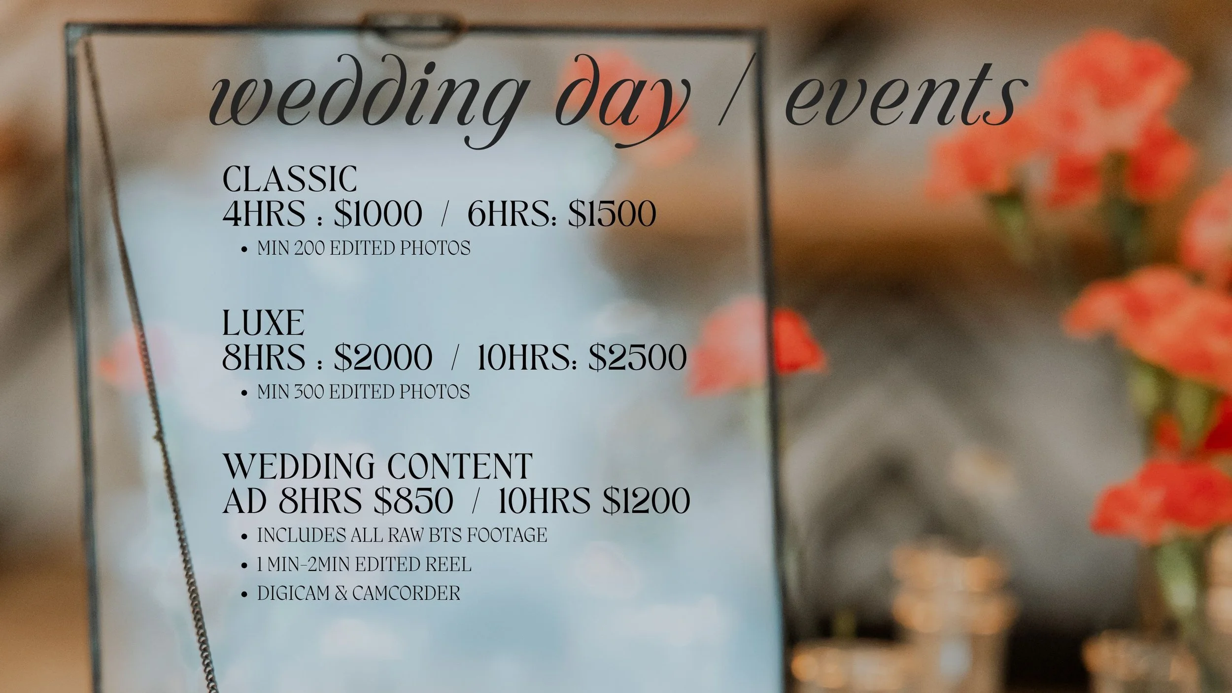 Schedule a free consultation with me to discuss event details, packages and more.